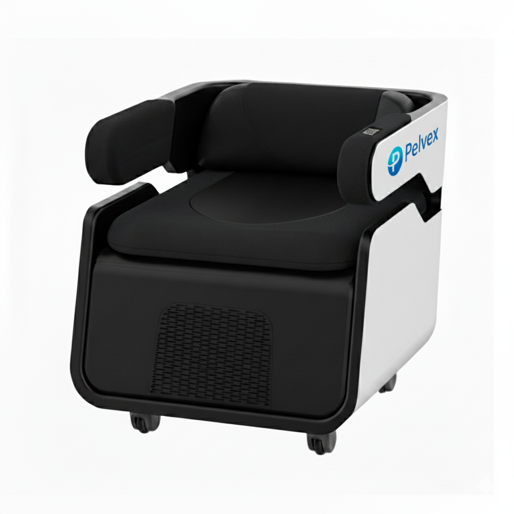 The Pelvex is an advanced PEMF pelvic floor therapy chair designed to strengthen and restore pelvic muscle function through gentle, non-invasive stimulation.
